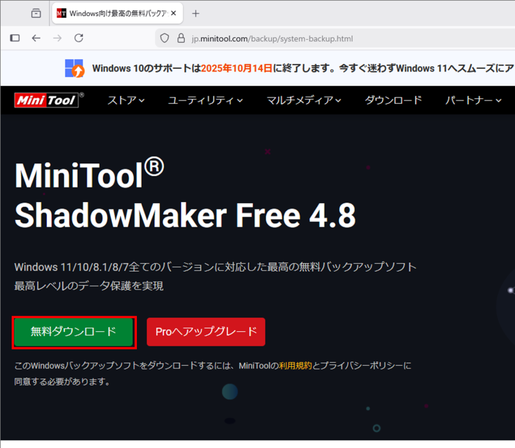 MiniToolShadowMakerのインストール