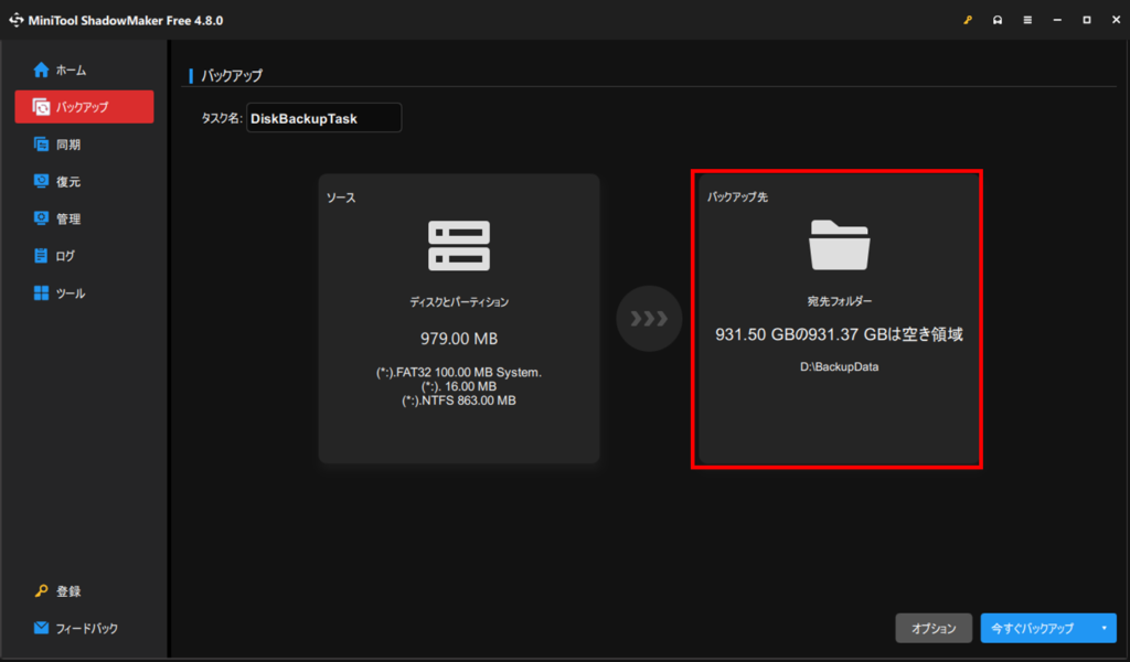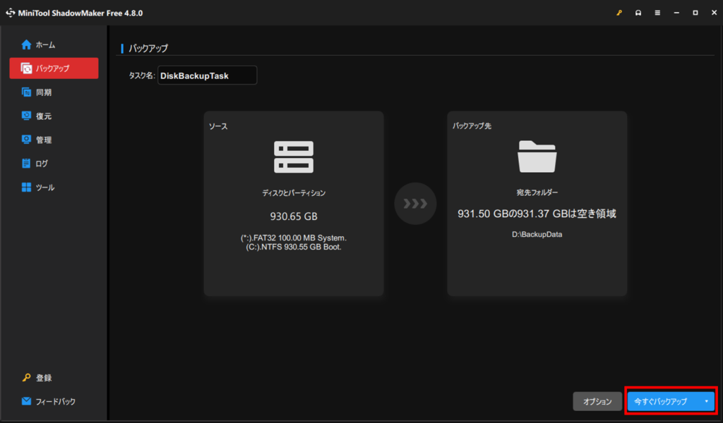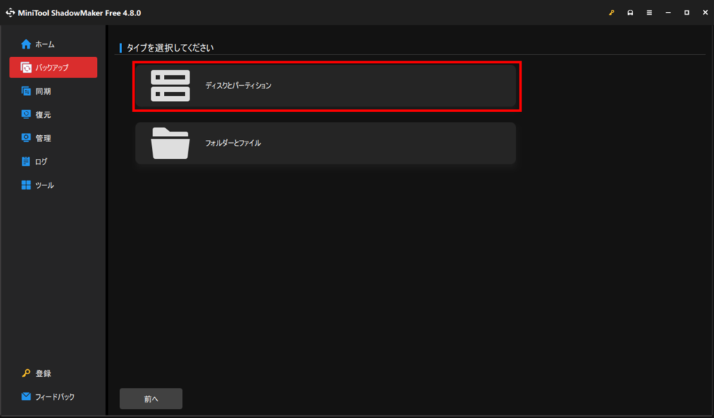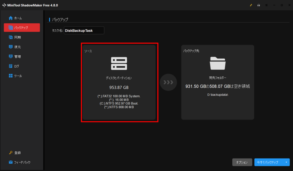 フリーソフトはこちらのMiniToolShadowMakerFreeがおすすめです。