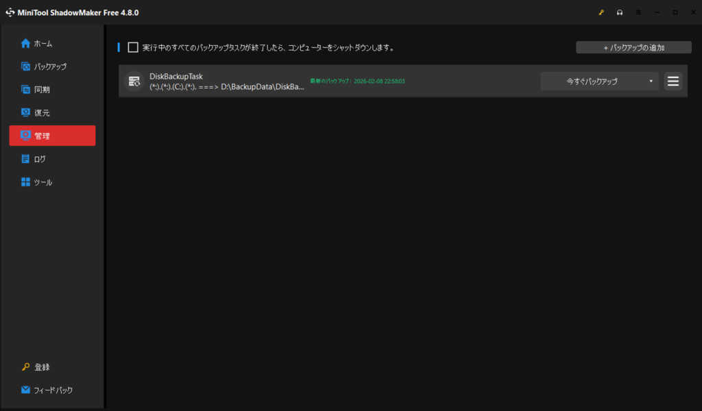 バックアップソフトウェア MiniToolShadowMaker