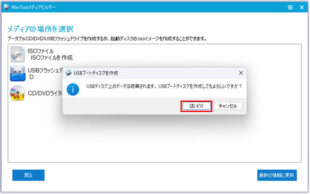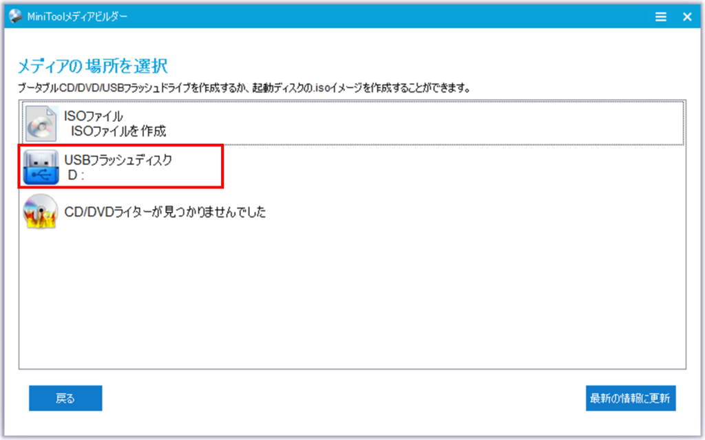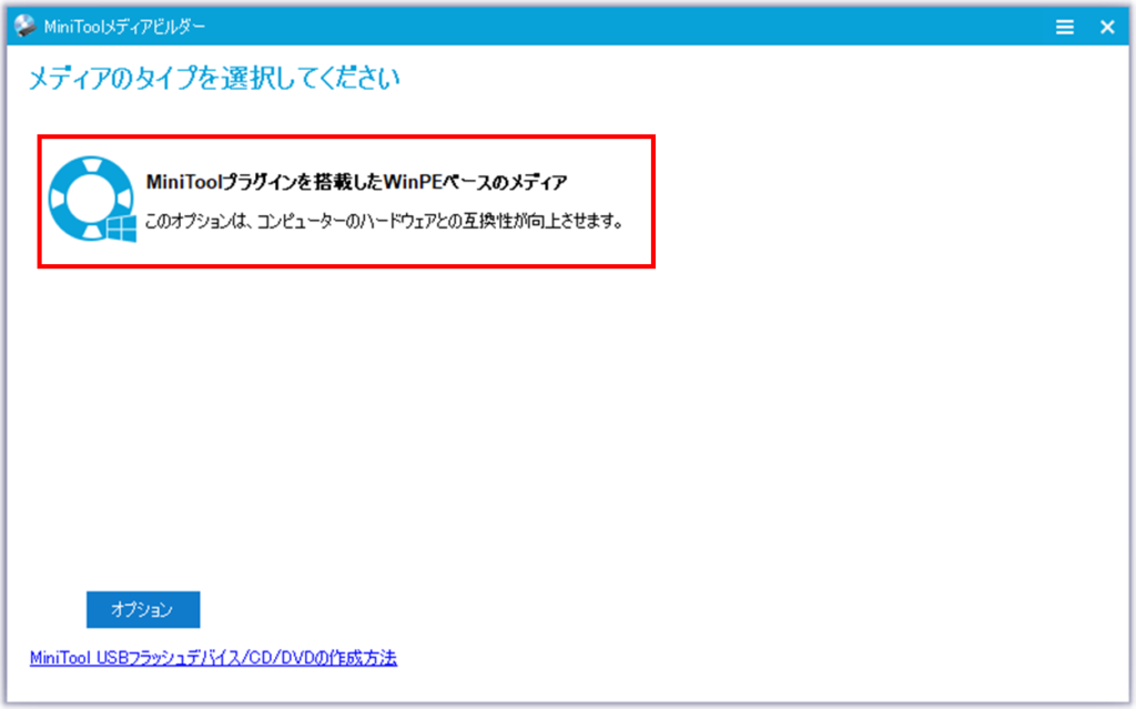 MiniToolプラグインを搭載したWinPEベースのメディアを選択します。