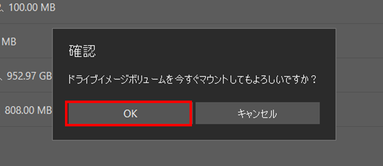 マウントするパーティションを選択して、マウントボタンを押します。