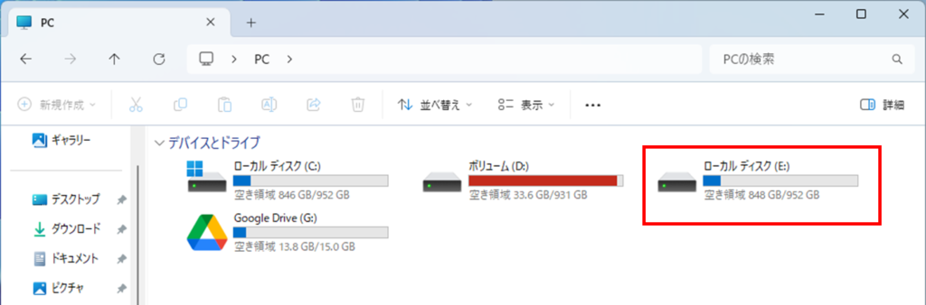 バックアップデータがドライブとしてマウントされます。