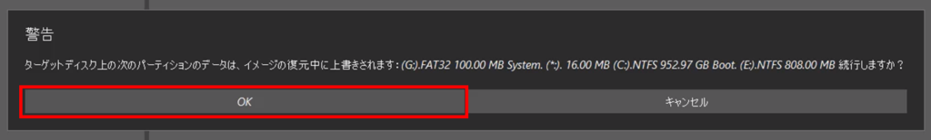 警告画面が出てくるのでOKを押します。